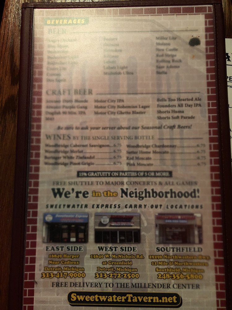 Sweetwater Tavern Menu